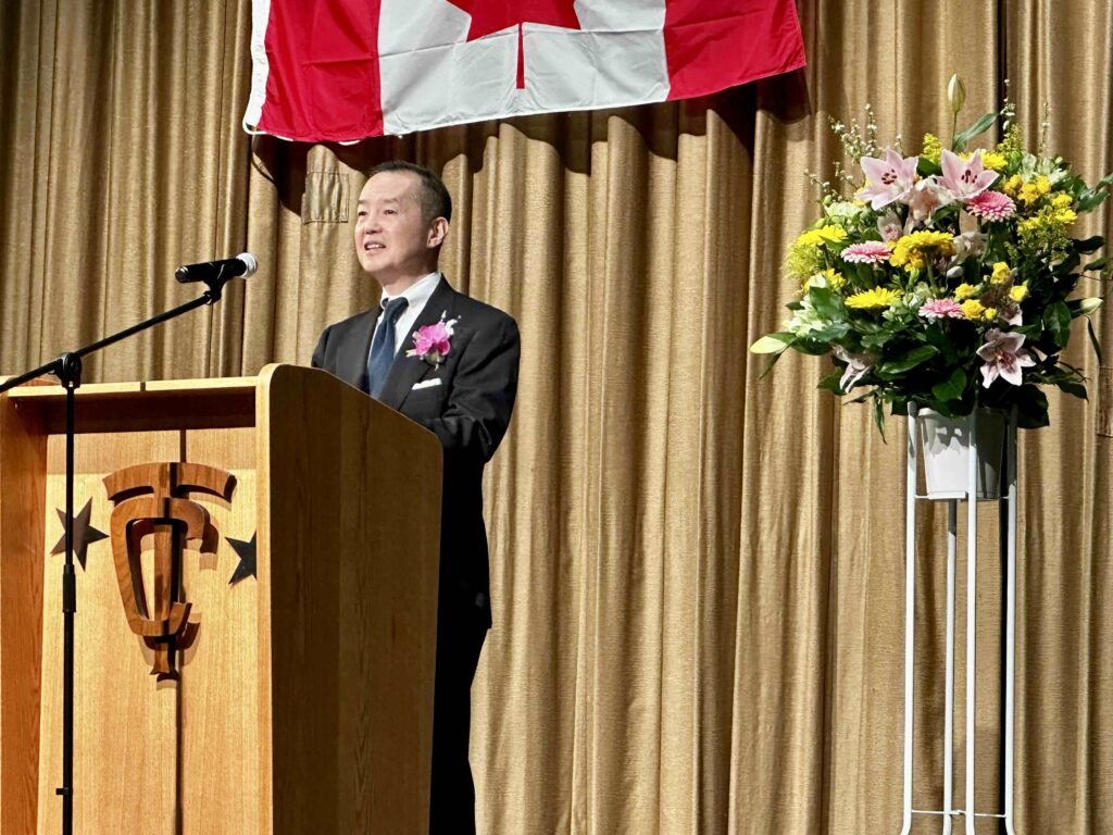 ご来賓の髙橋在バンクーバー日本国総領事より温かい祝辞をいただいた後、当会の教育部会長である石川理事からも、卒業生へ向けて励ましの言葉が贈られました。