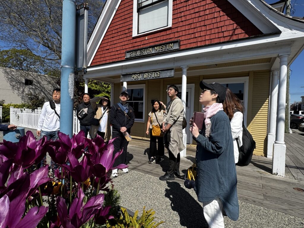澄み渡った青空と心地よい春の日差しのもと、デスティネーション・デベロップメント・コーディネーターの堀田ミミさんのガイドにより、ブリタニア・シップヤードやビレッジ内のトラム博物館、日系人博物館、ジョージア湾缶詰工場国立史跡を見学しました。